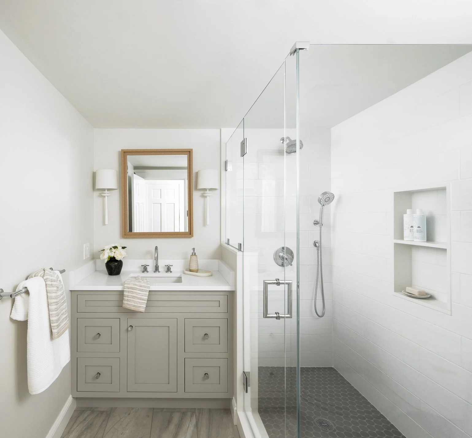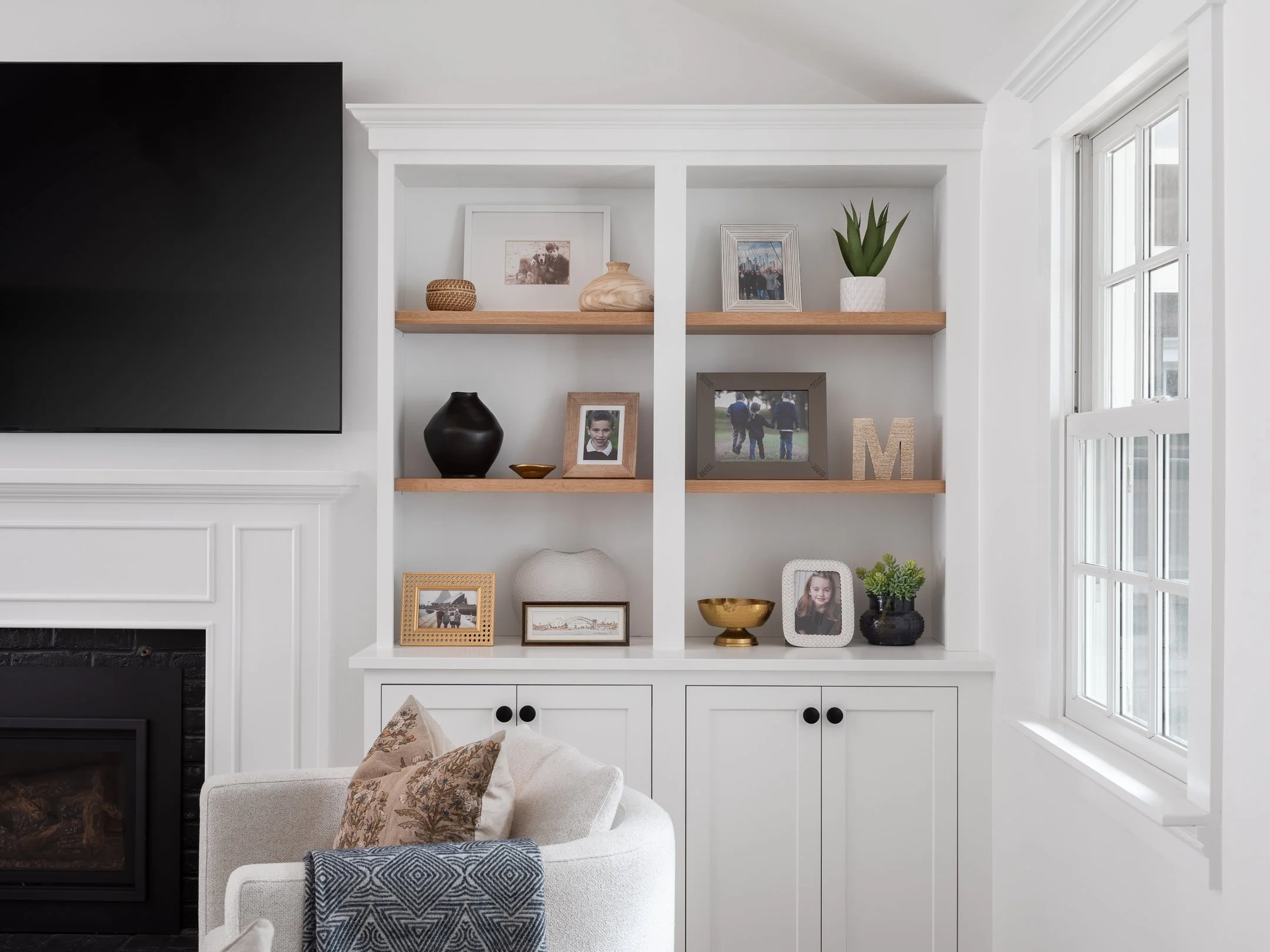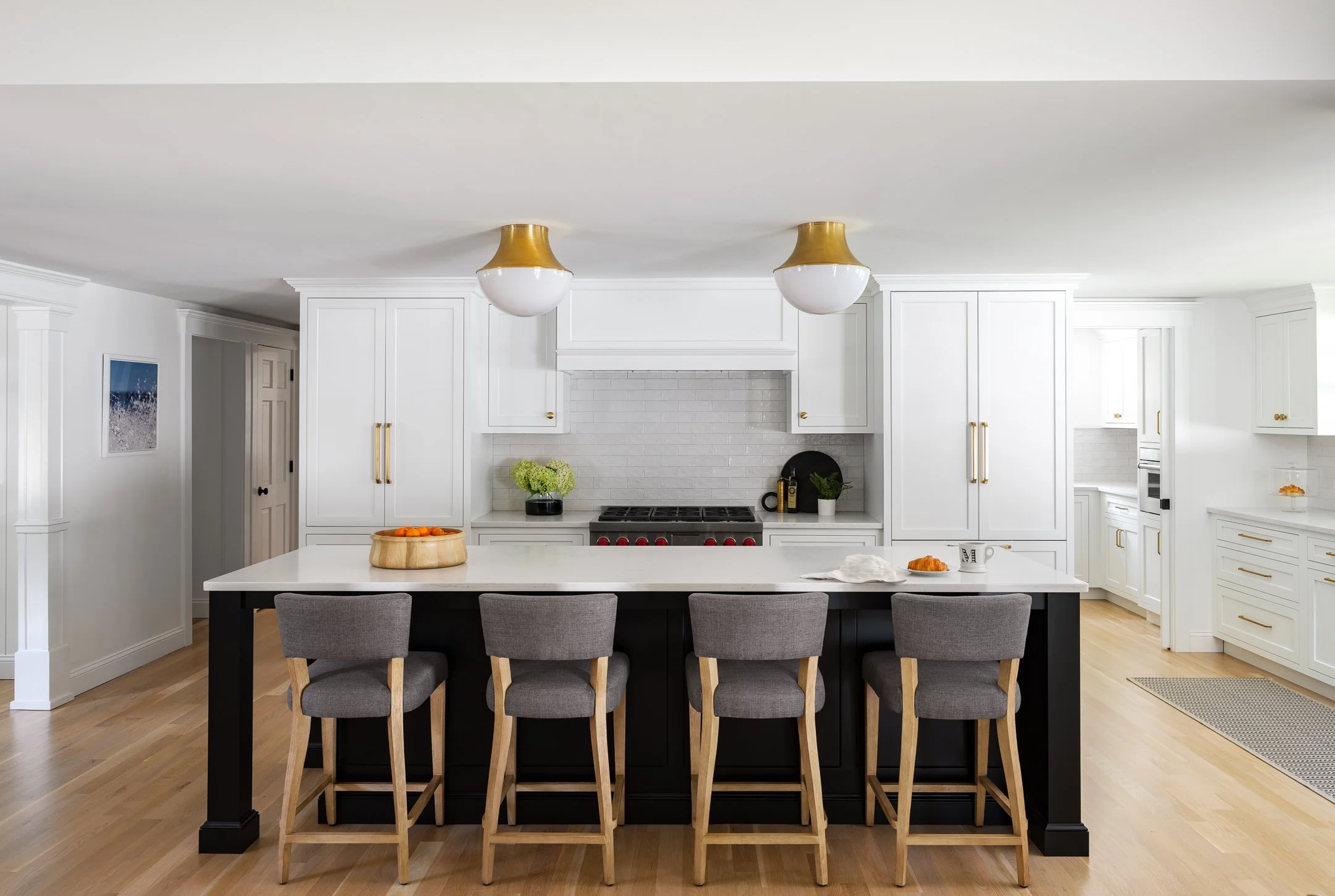 We used every inch of this first floor configuration. We inspired the client to vault the ceilings gaining incredible height over the fireplace and together, reimagined the space entirely to include a hard-working butler’s pantry, a gem of a hidden laundry room and a stylish first-floor full bath for the client.